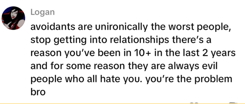If you’re an avoidant, you’re no stranger to the vitriol or hate we get online. The internet has said we’re monsters. In fact, THE monsters of the dating world. There are posts where people talk about their experiences with an avoidant, and you hear us called the craziest names: wolves in sheep’s clothing, manipulators, emotionally stunted losers, narcissists, you name it.