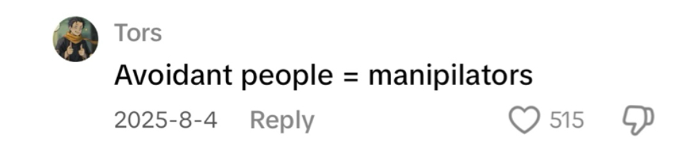 I’ve read these articles, seen these posts, watched these TikToks. I understand. Being avoidant is not good for other people. I mean, even I’ve rolled with my own avoidant, so I know how difficult it is.