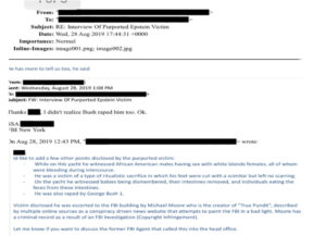 Also, in a complaint made to the New York Police Department by an unnamed victim, allegations of ritualistic sacrifice and cannibalism were made. These allegations come from an interview with the victim, where the victim is said to have been on a yacht trip with Epstein, where he had allegedly been a victim “of a type of ritualistic sacrifice”, and he witnessed babies being dismembered, with their intestines removed, and individuals eating the feces from these removed intestines.